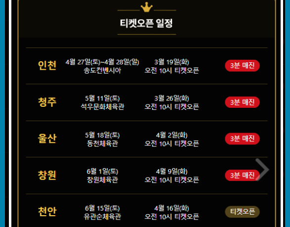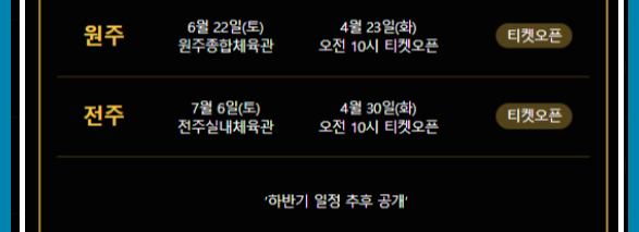 앞으로 원주, 전주, 티켓오픈 예정에 있습니다.
