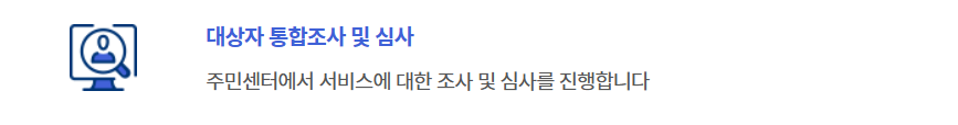 2. 신청을 하시면 주민센터에서 대상자 통합조사 및 심사를 진행합니다.