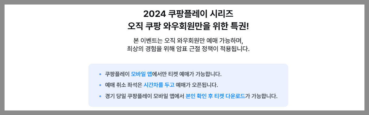 ● 티켓 예매 자격 : 쿠팡 와우 회원