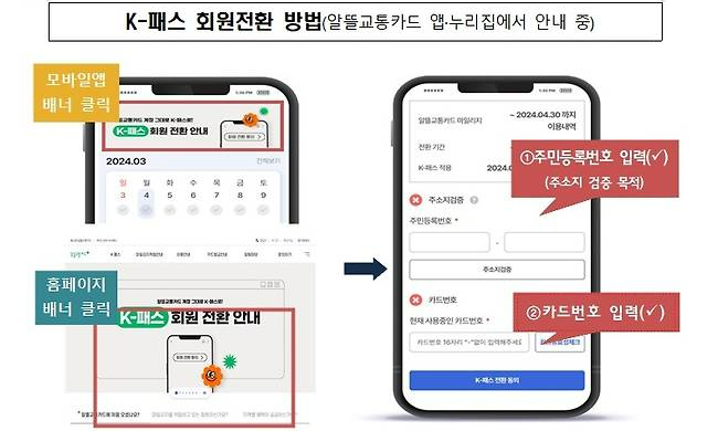 아래 버튼을 통해 꼭 K-패스 카드로 변경 하셔야 합니다.